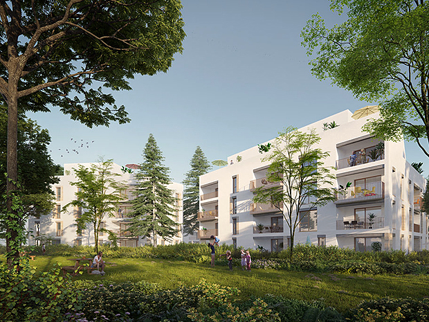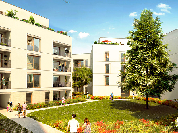 Cette opération regroupe des logements allant du T3 au T4 disposés sur 5 bâtiments de 4 étages. La plupart disposent de balcons, ou terrasses et de garages en sous-sol.